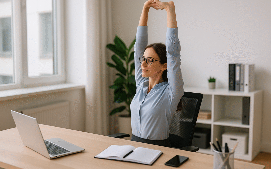 Việc ngồi làm việc trong thời gian dài khiến cơ thể dễ bị căng cứng, đặc biệt ở cổ, vai và lưng. Để hạn chế tình trạng này, việc duy